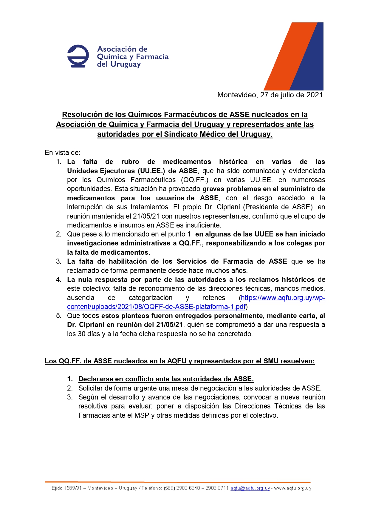 Resolución de los QQFF de ASSE Resolución de los QQFF de ASSE nucleados en la AQFU QQFF de ASSE plataforma